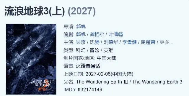 更关键的是,《流浪地球3》这次玩得很大——直接拆成上下两部,上部已经定档2027年春节。只要剧情不垮、制作不水,保持前两部的水平,那整个《流浪地球3》系列的总票房,冲击100亿绝不是梦。