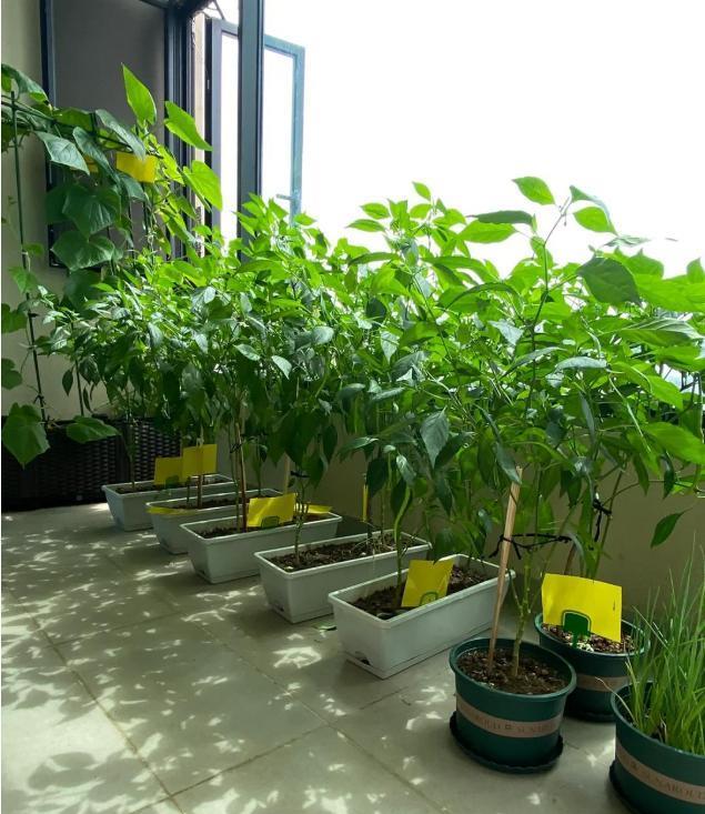 “阳台上种的小辣椒结了不少,小葱也快能吃了!”