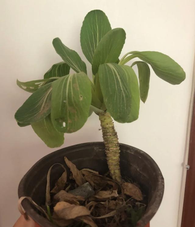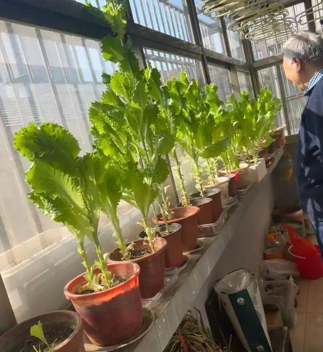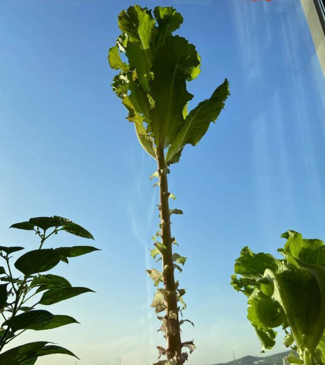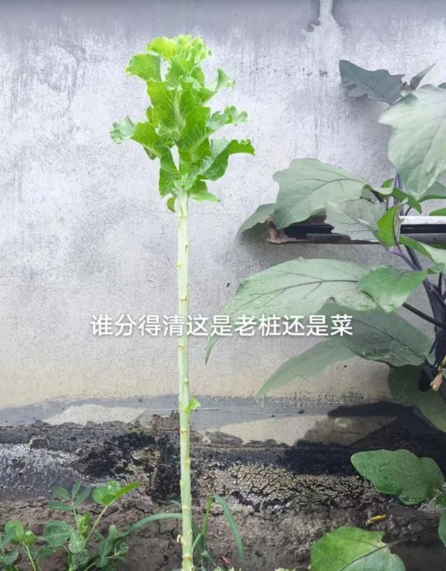 你猜怎么着?这些生菜被她养得亭亭玉立,叶子掰了一茬又一茬,生生吃成了“老桩”造型!
