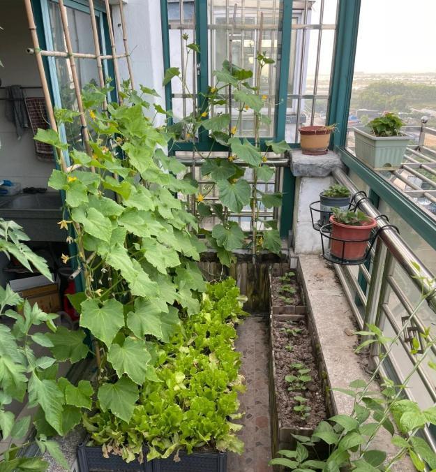 “自从我妈来了,我家阳台彻底变成菜园子,现摘的菜就是香!”