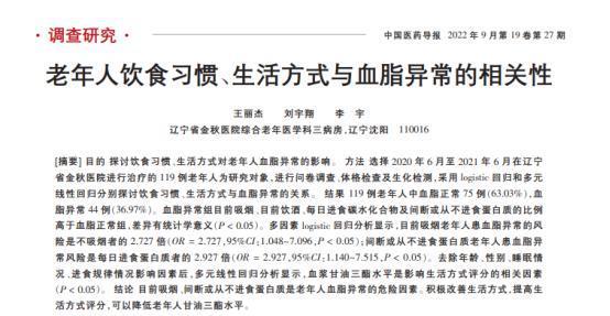 [1]王丽杰,老年人饮食习惯、生活方式与血脂异常的相关性,2022-09-25
