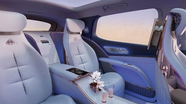 坐进车里,才是真正理解它价值的地方。MBUX超联屏横贯整个中控台,科技感直接拉满。但这块屏幕背后,还藏着专属的迈巴赫开机动画和界面,仪式感给你做足了。后排是两个独立的头等舱行政座椅,通风、加热、按摩功能一应俱全,甚至还有颈部和肩部加热。得益于纯电平台,地板是全平的,再加上特殊的隔音材料和双层隔音玻璃,关上车门,车里安静得仿佛与世隔绝,再配上Burmester? 4D环绕音响系统,这体验,自己想象一下。