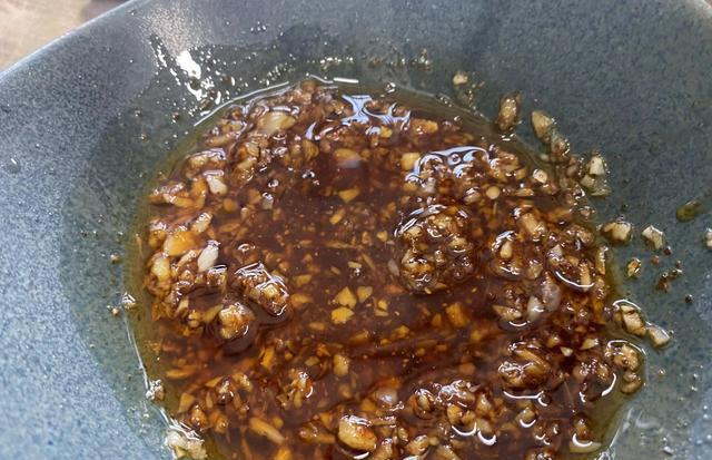 第五步:加入2勺酱油、1勺醋和1勺香油搅拌均匀。最后淋在蒸好的茼蒿上面就可以了,调料也可以另外装一个碟子,蘸着吃。