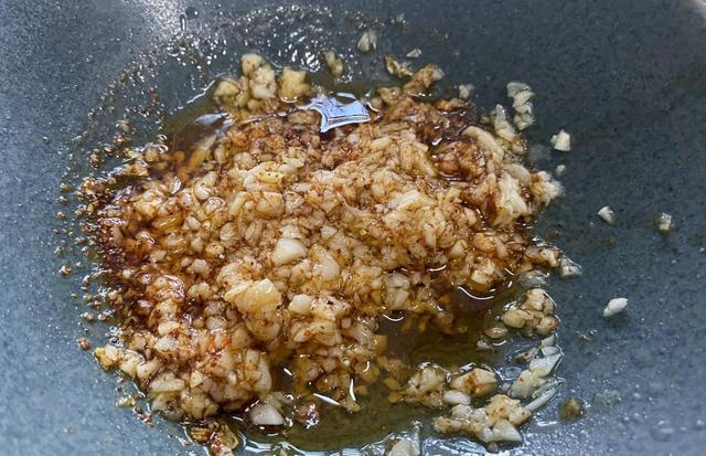 第四步:碗里加些蒜末和辣椒面,然后浇上热油,激发出香味。