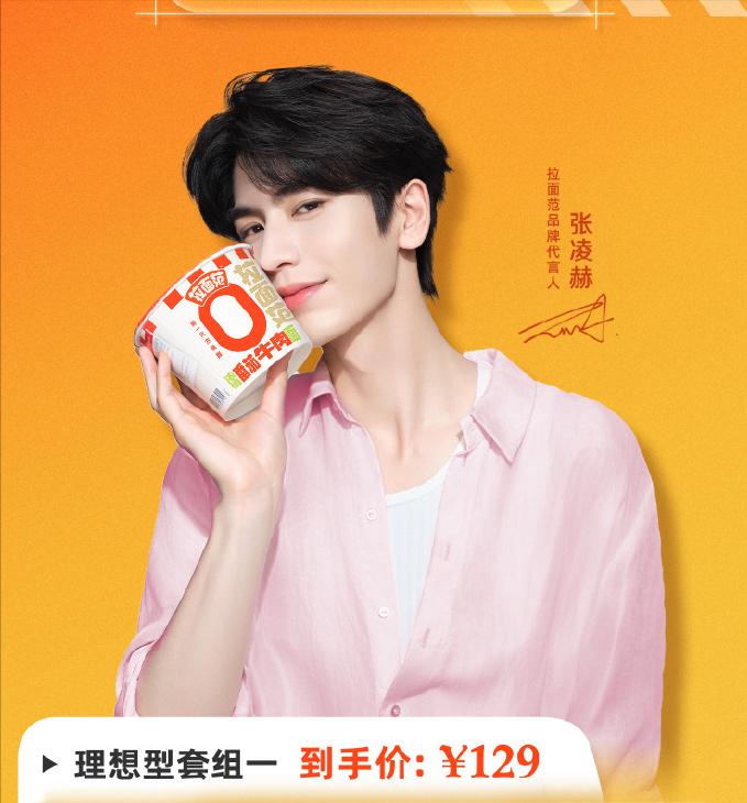 无独有偶,同样想到这种方法的还有今麦郎,10月24日,该品牌旗下的拉面范宣布,代言人张凌赫带来了新的活动折扣。