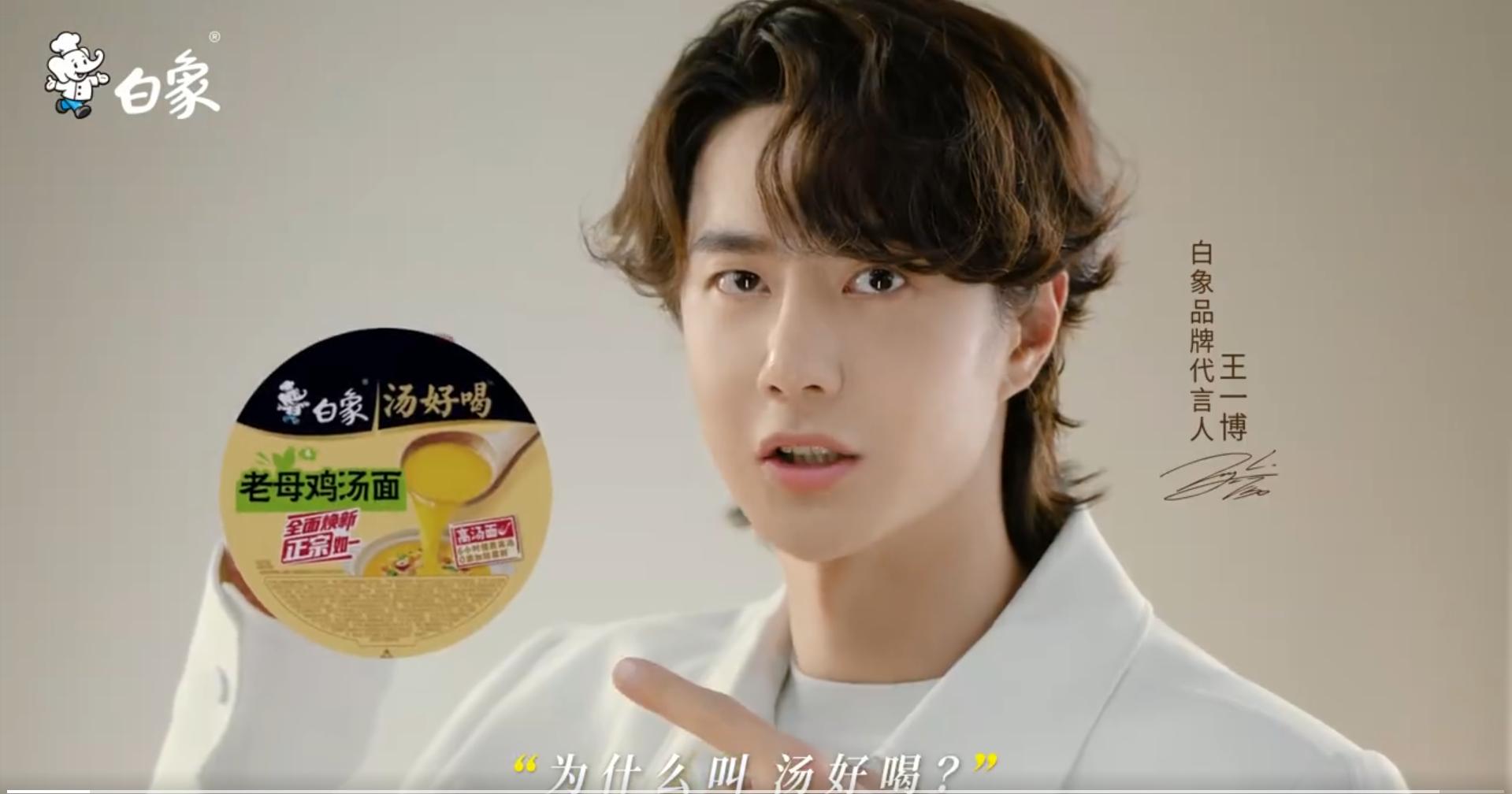 不过最近白象为了刺激消费,直接请了顶流小生王一博来代言,10月22日双方还共创微博,为白象的汤好喝系列泡面做宣传。
