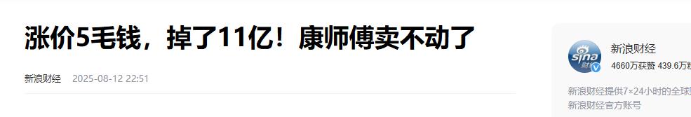 谁家先涨了五毛钱,另外几家就得赶紧加上,主打一个谁也不能少赚,原料成本上升,涨价也很正常,但要是涨得太快就糟了,这里可以用康师傅来举例。