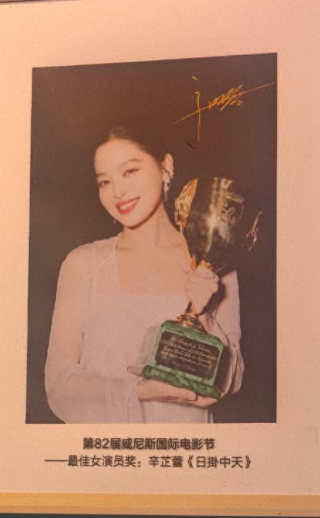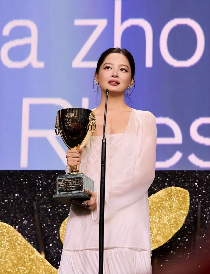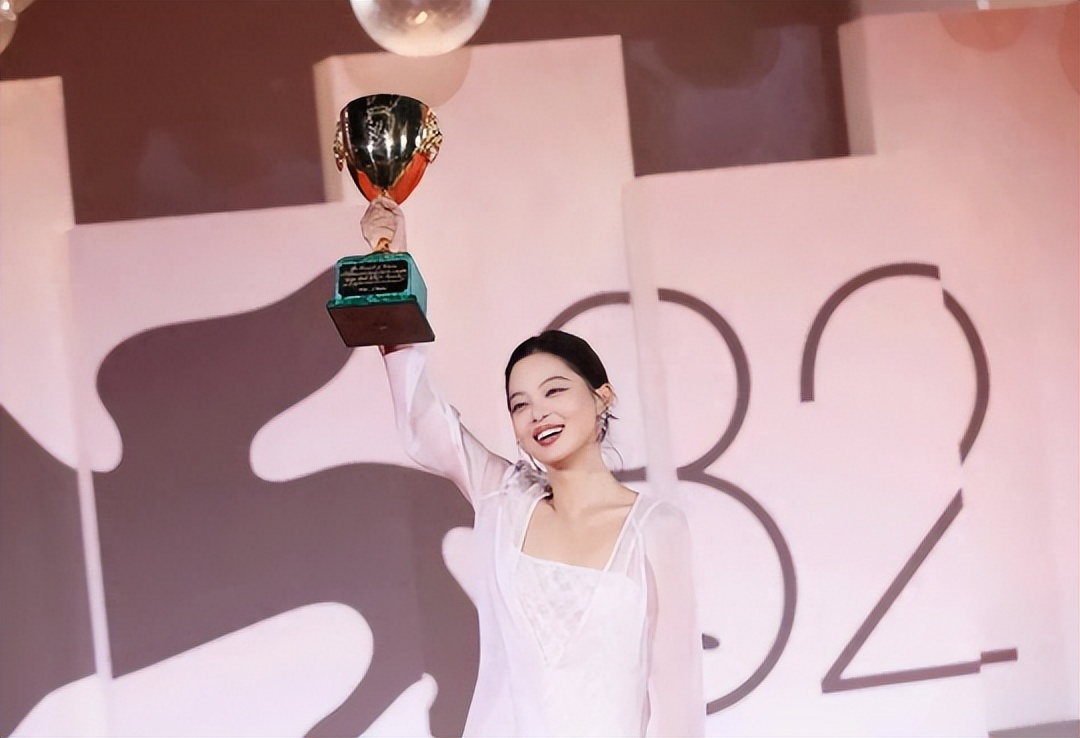 她双手捧着奖杯,脸上洋溢着喜悦的神色,记得她上次得奖是在一个月前,拿下了威尼斯影后。
