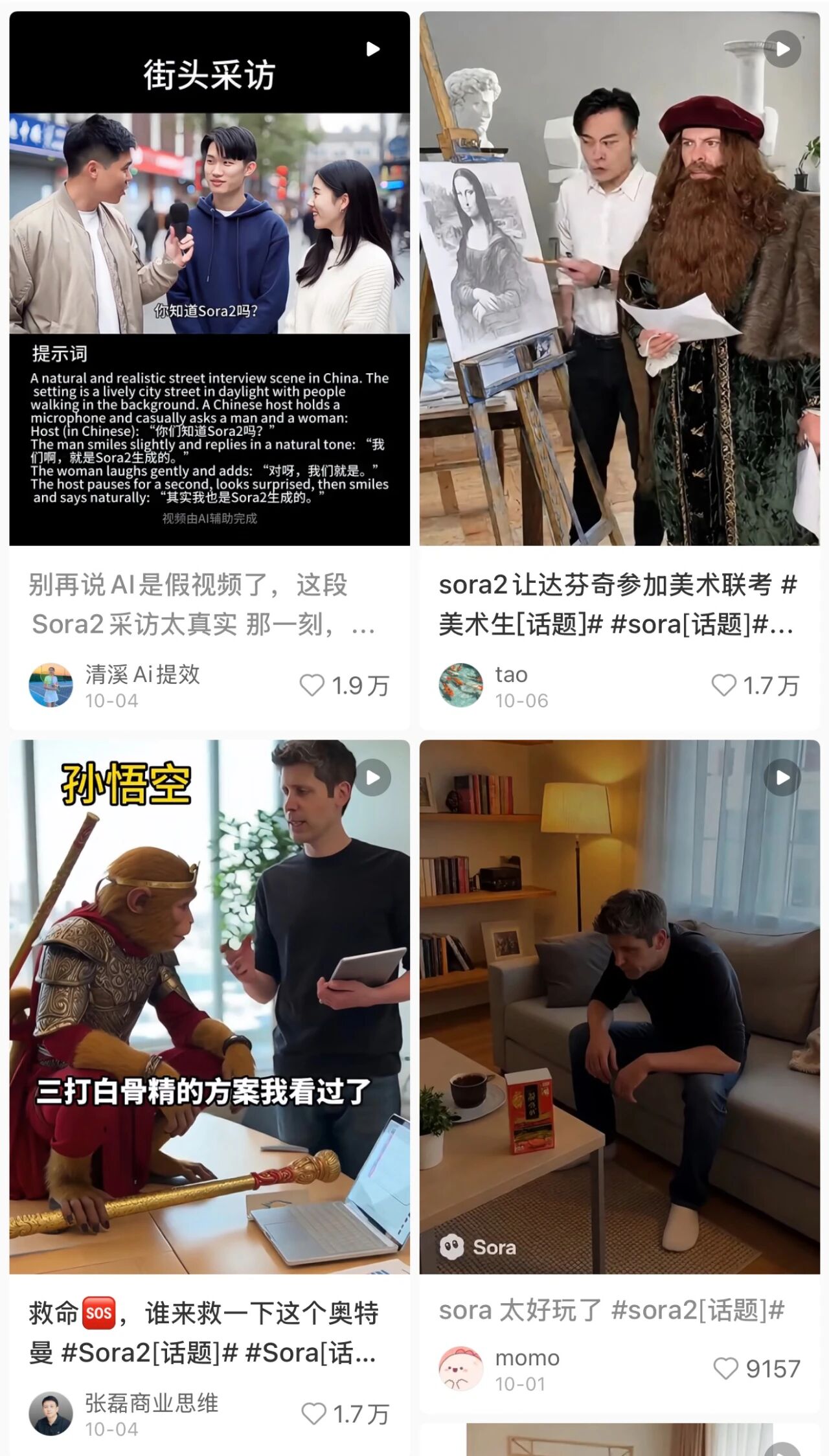 隔着屏幕的看客感觉已经进入了一个混乱次元——而这一次,混乱的源头就是OpenAI新推出的Sora APP。这款应用不仅能通过文字直接生成视频,连页面设计都跟TikTok相差无几,竖屏、瀑布流、算法推荐一个不落,人送外号“AI版抖音”。