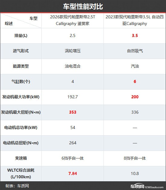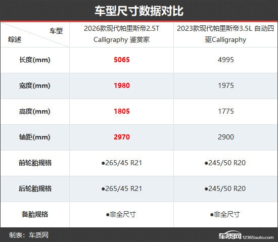 2026款现代帕里斯帝共推出3款车型,车型数量与2023款相比进行了精简。本次对比选择了新老款车型的Calligraphy版本,以便能够更加直观地看出两者在配置层面的具体差异。