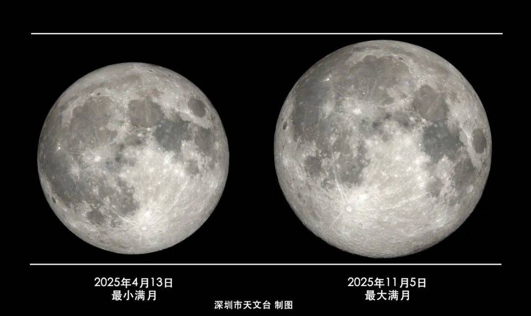今年最值得期待的满月将在11月5日登场。当天21:19分,月亮将达到最圆时刻,距离地球仅约35.7万公里,为2025年满月中距离地球最近的一次,因此也将成为全年最大最亮的“超级月亮”。