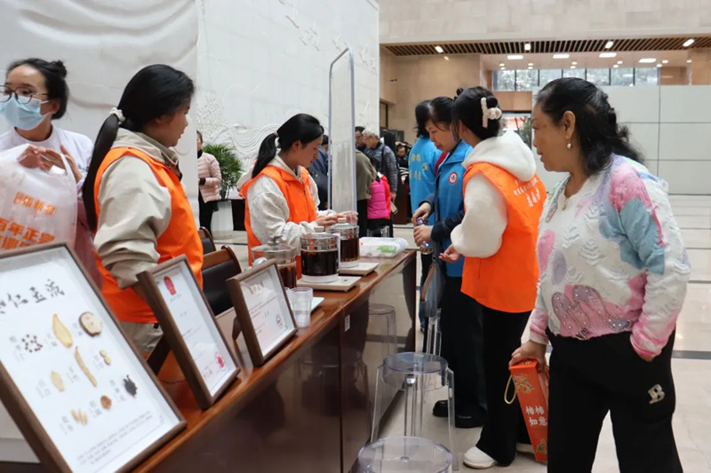 养生膳食区配有养生茶艺品鉴、健康营养粥品尝等环节,通过讲解搭配饮食进行养生的知识,为老年朋友日常饮食提供了专业指导。
