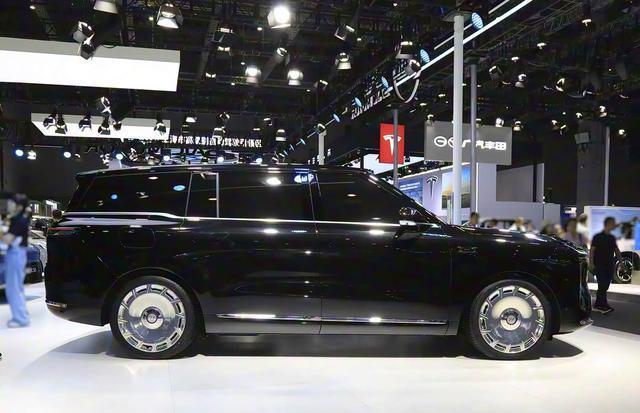 再来看车身侧面部分,车身侧面是LS9的亮点之一,5279毫米的车长和3160毫米的轴距赋予了它修长而霸气的轮廓。C柱上扬的线条和隐藏式门把手设计,让整车侧面更显简约,同时降低了风阻。悬浮式车顶和隐私玻璃的运用,进一步提升了豪华感,而20/21/22英寸的大尺寸轮毂(可选布雷博制动卡钳)则增添了迈巴赫般的尊贵气息。侧窗下沿的镀铬饰条与后窗形成一体式效果,细节之处尽显匠心。而且5279mm2000mm1806mm 的尺寸堪称 “移动的豪华舱”,但 2000mm 的车宽与 1707mm 超宽后轮距设计,又为操控稳定性奠定了基础。平直的车顶线条从 A 柱延伸至车尾,确保了第三排乘客的头部空间,再来看车尾部分,车尾设计同样令人印象深刻,厚重的尾箱盖与贯穿式尾灯相呼应,内部结构经过精心设计,点亮效果出众。顶部扰流板带弧形外檐,不仅优化了空气动力学性能,还能在行驶中形成下压力。后挡玻璃虽未配备雨刷,但扰流板外檐起到了遮雨作用,实用性兼顾美观。部分车型尾部还设有牵引专用装置,包括拖车钩和电连接口,拓展了户外使用场景。