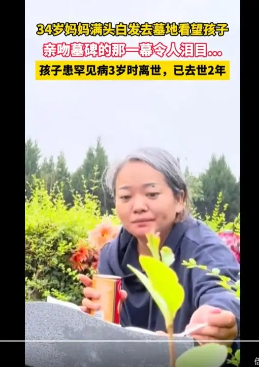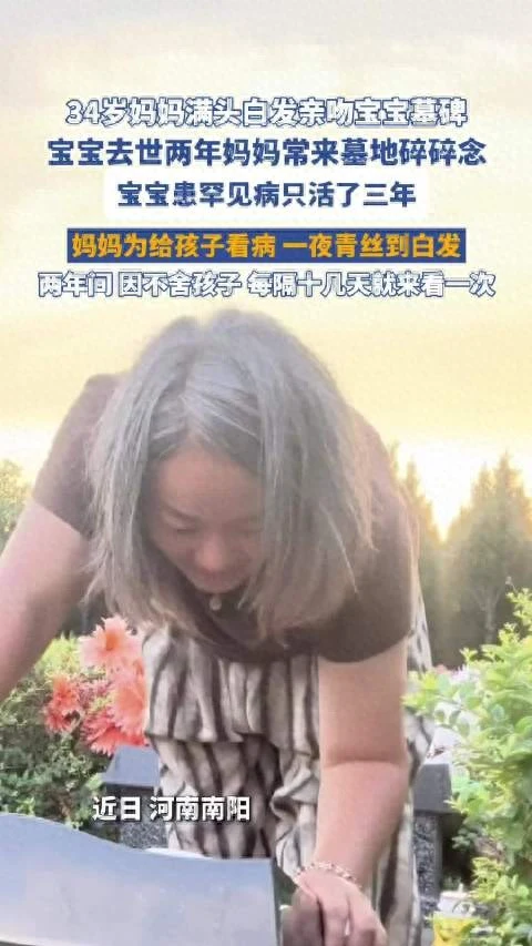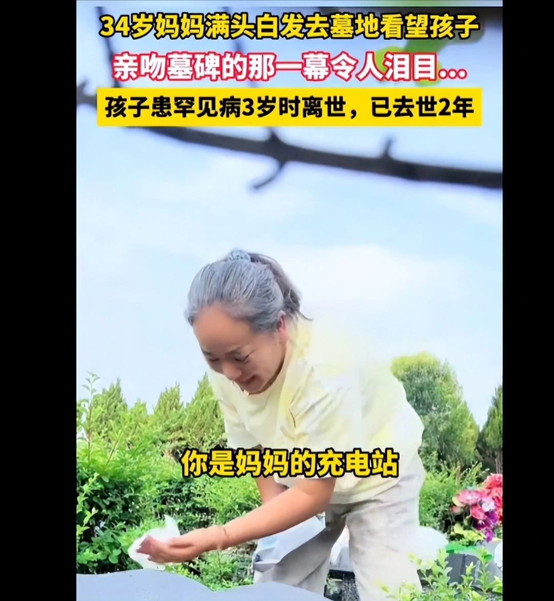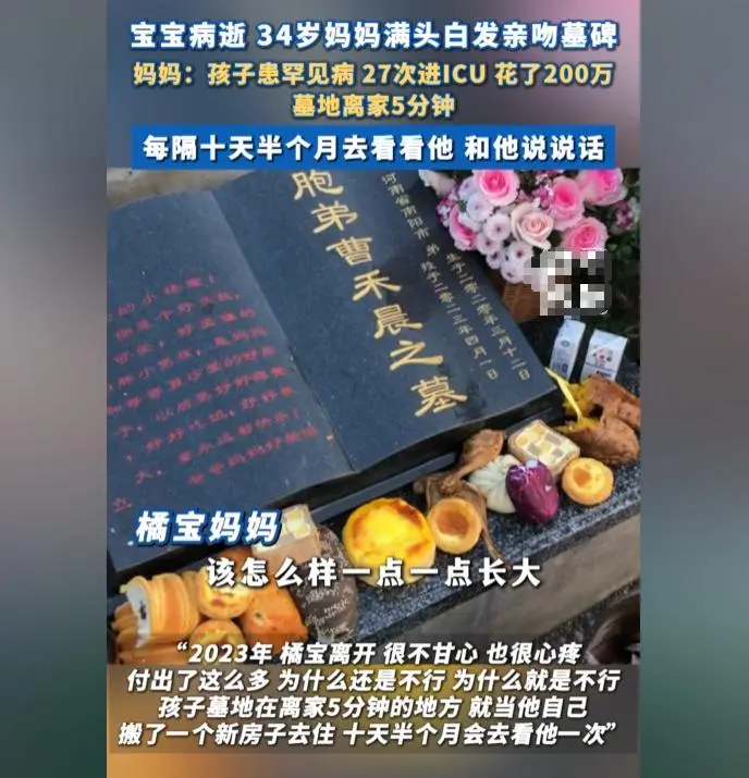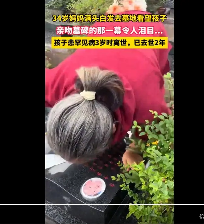 34岁妈妈满头白发亲3岁宝宝墓碑:曾27次进ICU,花200万没救回来