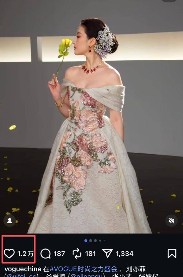 刘亦菲国际点赞量不如韩流,新生图疲态尽显,眼妆浮夸和刘冲撞脸