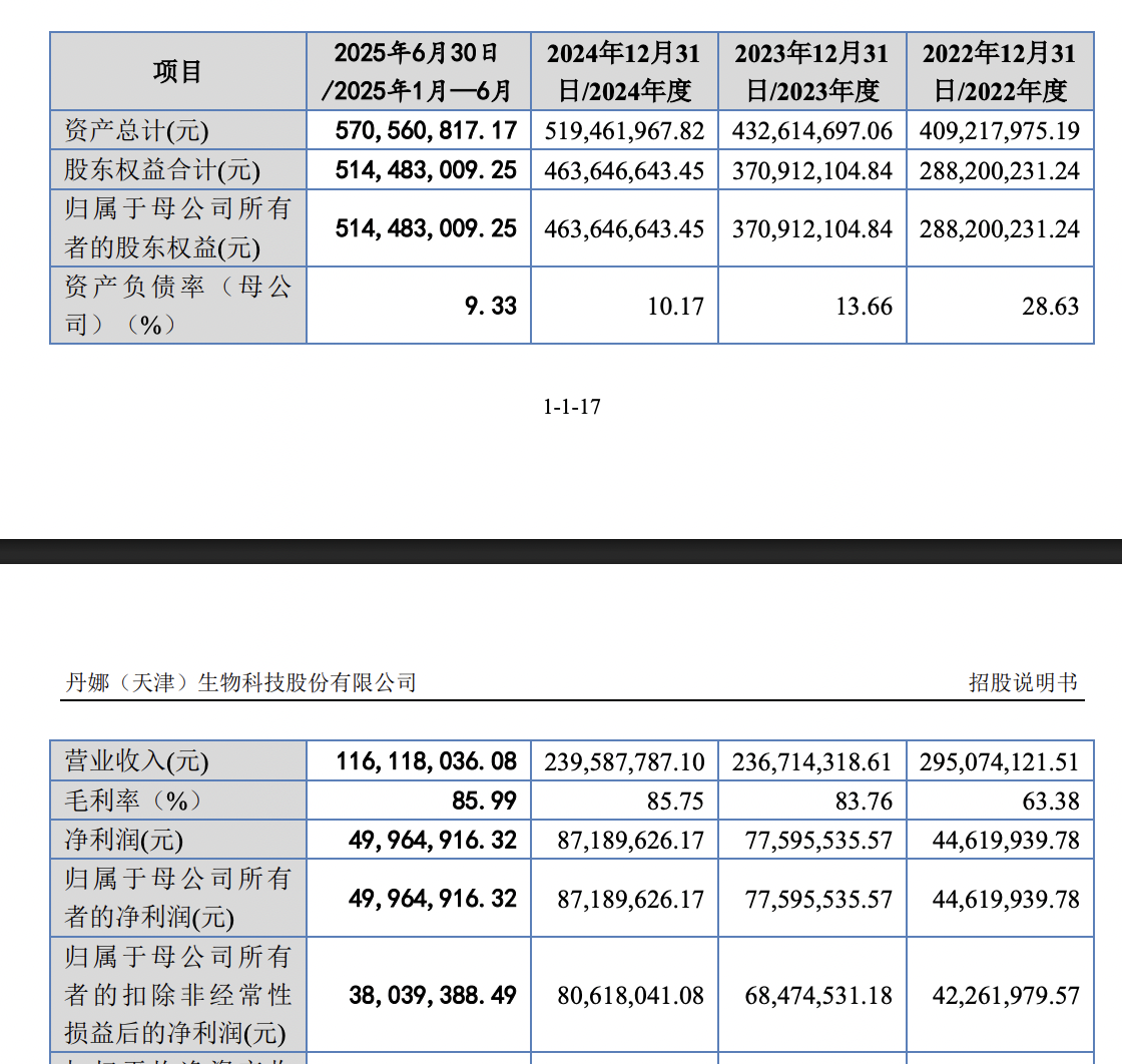 2022年-2024年及2025上半年,公司实现营收分别为2.95亿元、2.37亿元、2.4亿元及1.16亿元;归母净利润分别为4461.99万元、7759.55万元、8718.96万元及4996.49万元;毛利率分别为63.38%、83.76%、85.75%、85.99%。