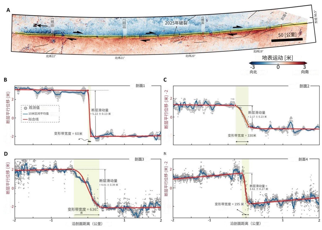 “这段断层约有两公里厚的低速破裂带,剪切波速降低约45%。我们认为,这样的厚断层带,加上断层几何形态与盆地结构,共同促成了持久的超剪切传播。”研究团队在报告中写道。