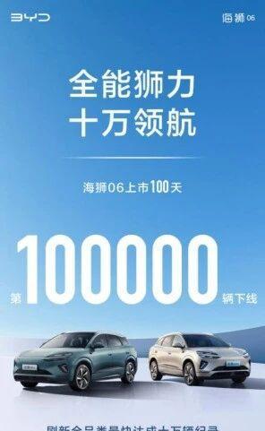 百天十万辆 比亚迪海狮06刷新全品类最快达成十万辆纪录
