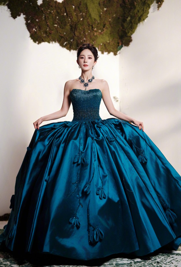 近日,杨幂最新宝蓝色长裙造型写真释出,瞬间引爆时尚圈热议。她身着一袭流光溢彩的宝蓝色抹胸长裙,宛如从古典油画中走出的仙女,将华贵与诗意演绎到了极致。这袭宝蓝色长裙,是造型的绝对亮点。高定面料的丝缎质感在光影下泛着幽邃光泽,抹胸设计勾勒出优雅肩颈线,上半身的精致珠绣如星光点缀,与下半身蓬松的大裙摆形成强烈视觉冲击。裙摆上立体花饰似是自然生长的艺术,每一处褶皱都透着高级定制的精工细作,将公主风的甜腻彻底剥离,重塑为大气雍容的女王气场。