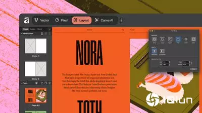 新推出的Canva Affinity将之前分散在独立的Designer、Photo和Publisher应用中的矢量、照片和版面功能统一在一起。因此,用户无需在多个应用之间切换,只需在同一界面的Vector、Pixel与Layout标签页之间切换即可。