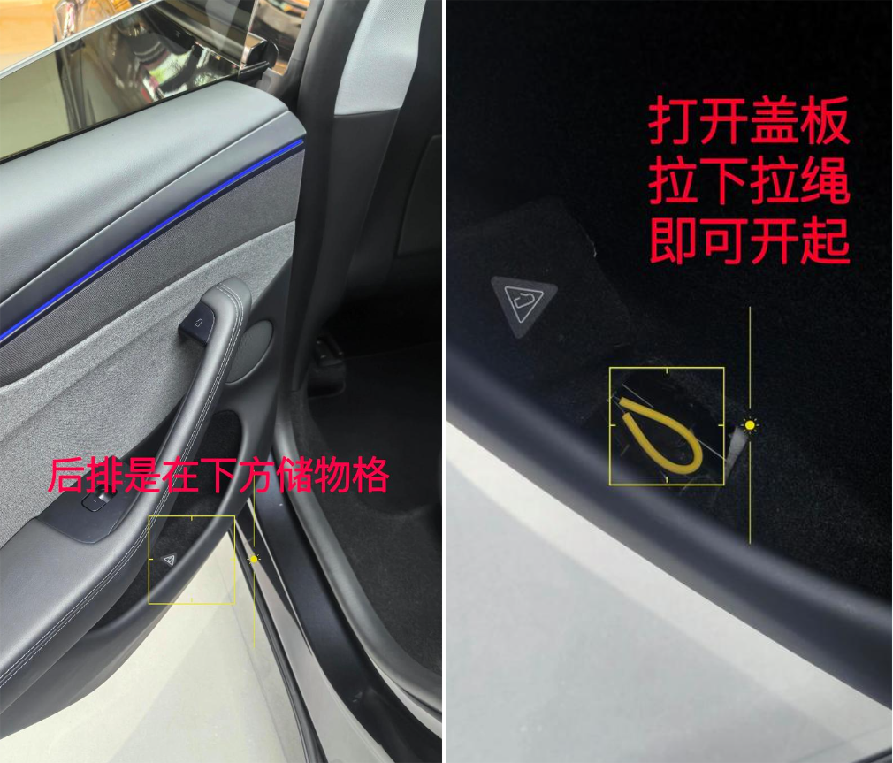 有些内门把手需要掀开地毯才能找到,有些内门把手需要撬开一个塑料盖才能找到拉环,有些内门把手会把机械拉环或拉杆设计在水杯槽的某个角落里……在车内乘客刚刚经过一次猛烈碰撞的状态下,是否还能有清晰头脑去寻找这些隐藏的机械开关呢?锂离子电池如果因高强度碰撞而出现热失控,从起火到爆燃只需要几秒钟;而火势的蔓延也只是需要几秒钟,在这几秒钟里,已经发懵了的车内乘员99%是无法快速找到并使用车门机械开关的。