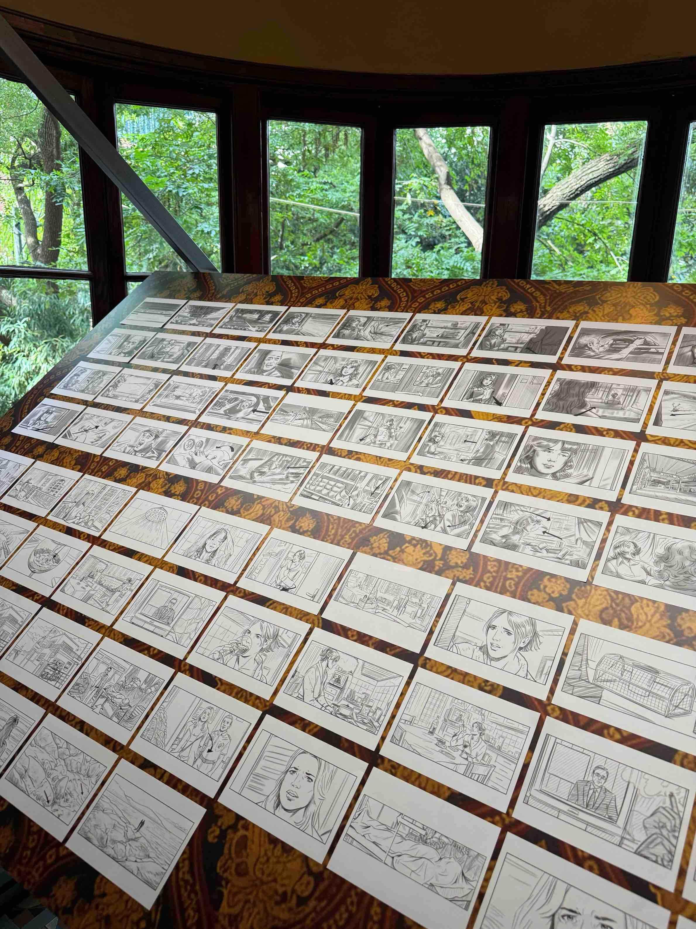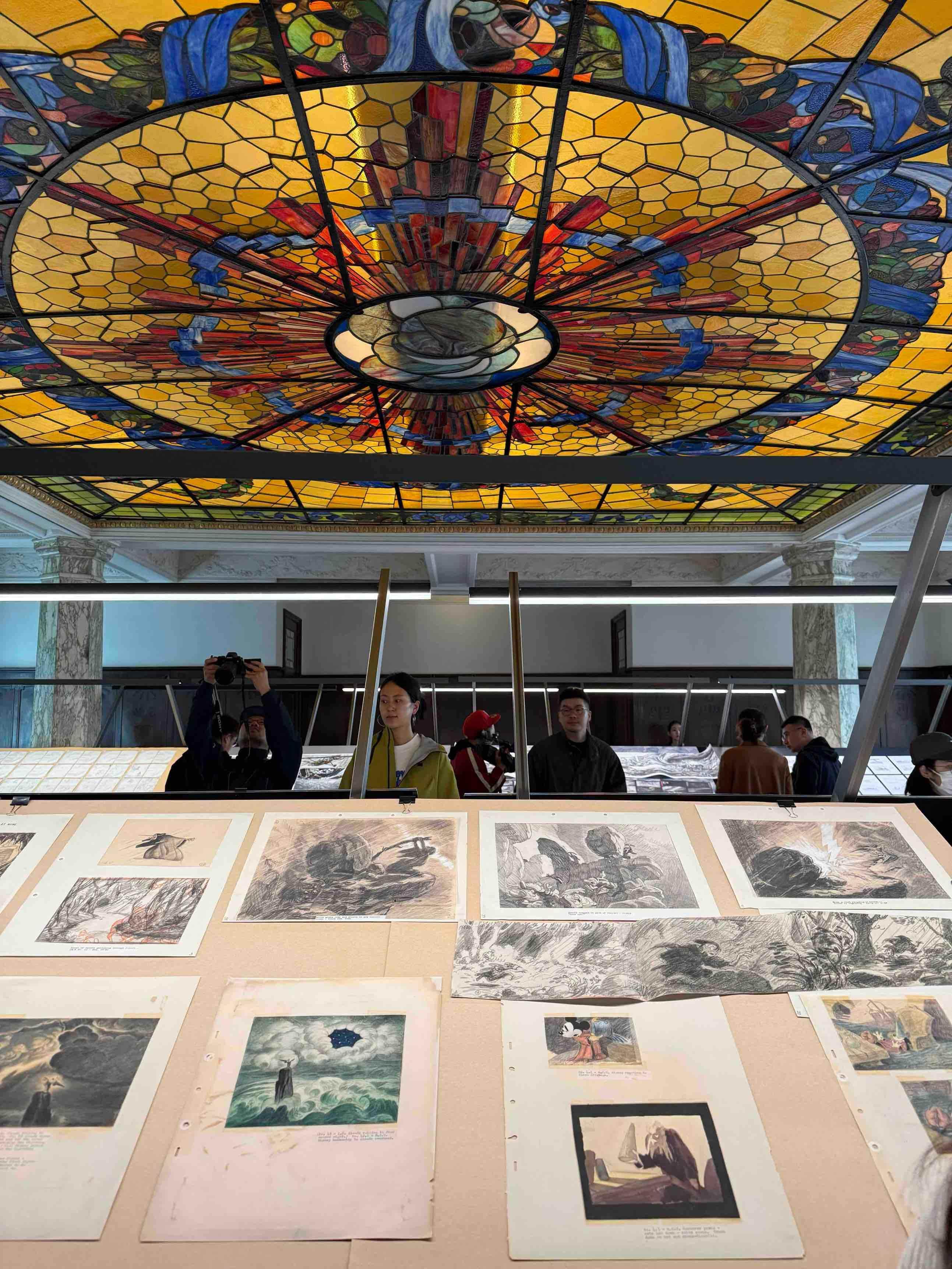 桌台的排列营造出流动的节奏感,似若引领穿梭于荣宅不同房间中的观众穿越电影的每一帧画面。这一体验鼓励观众体会分镜图的本质——不仅仅是静态图像,更是电影叙事不可或缺的元素。