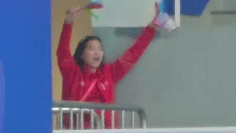 全红婵现身奥体为队友加油11月3日,第十五届全国运动会跳水项目继续在广东奥体中心游泳跳水馆展开角逐,当天将决出男子团体的金牌。全红婵现身奥体为队友加油!