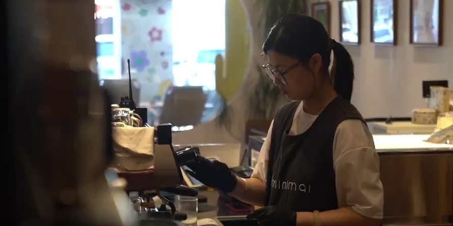 而就在同一条商业街的咖啡店里,咖啡师正围着操作台制作当季热门的桂花拿铁。
