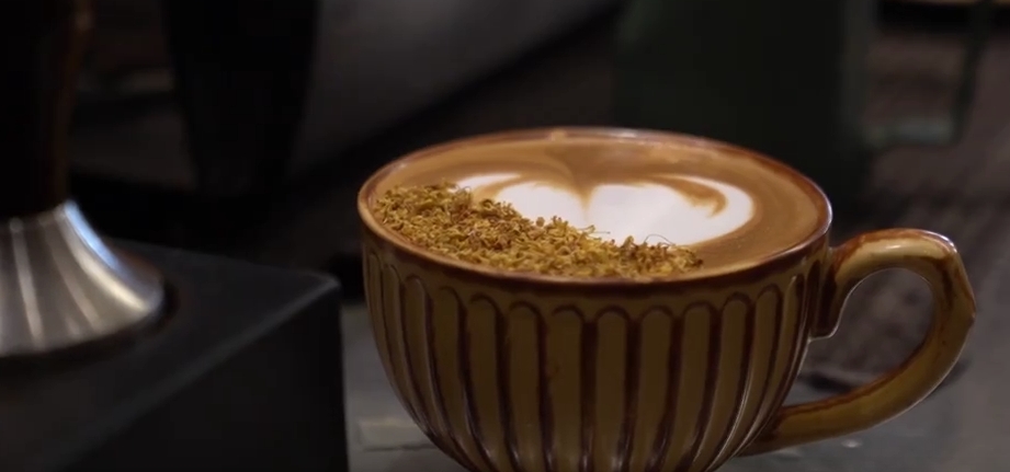 顾客 刘延坤:我感觉咖啡的醇香和桂花的清香,融合的非常的完美。