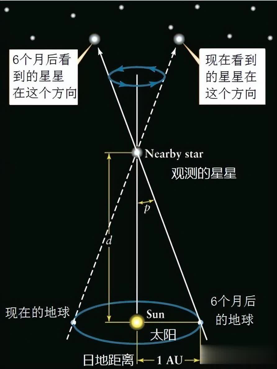 正如我们平时观察物体时,稍稍改变头部位置就会发现物体在视野中的位置有所变化一样,这种视差现象同样存在于天文观测中。当地球沿着其轨道绕太阳运动时,遥远的恒星在天空中的位置也会因为这种相对移动而产生微小的变化。通过比较不同时间点拍摄的星空照片,科学家们可以计算出恒星的视差角,进而利用三角函数关系得到恒星的实际距离。