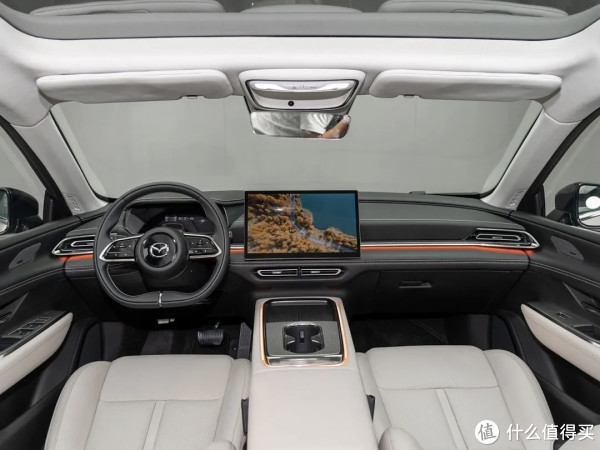 第五,内饰方面,马自达EZ-6走得是简洁风,配备了10.1英寸液晶仪表盘和14.6英寸中控屏幕,车机系统支持高德地图、四区域语音识别控制、手势控制、面部识别、声纹识别、手机APP远程功能、车联网和OTA升级等,如果你想体验大排量燃油汽车的轰鸣声,该车还具有模拟声浪功能。
