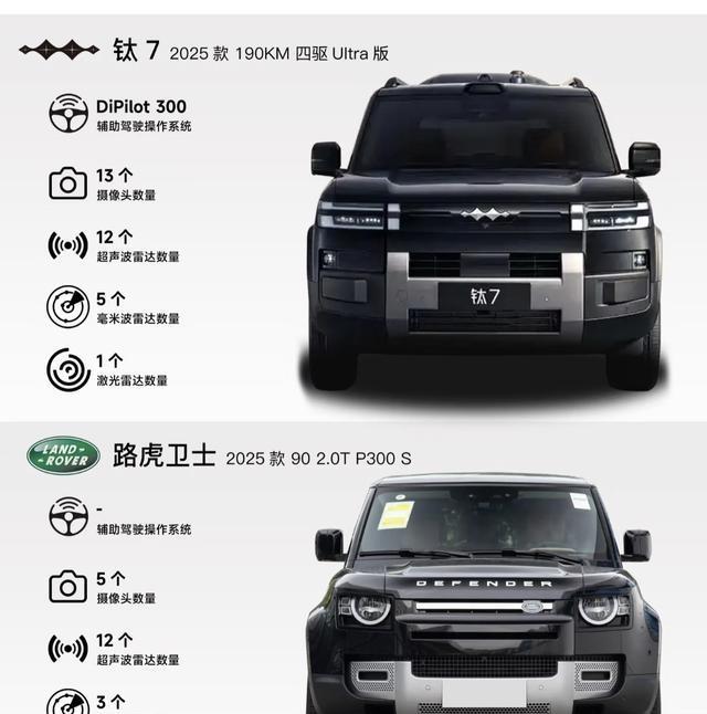 两台车看似“撞脸”,实则面向完全不同的用户群体——钛7是“务实家用的新能源卷王”,卫士是“溢价情怀的传统硬派标杆”,看清需求,选择自然清晰。