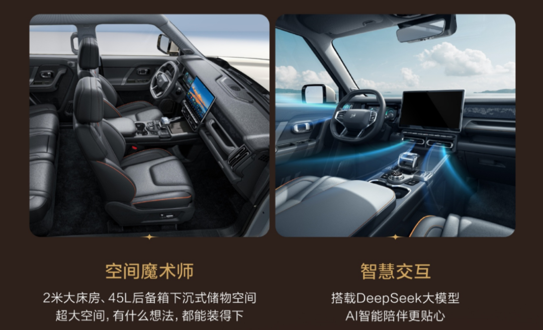 动力方面,新车搭载1.5T发动机+双电机插混系统,CLTC纯电续航里程147km,综合续航1500km。新车还配备XWD全自动智能四驱,新手也能变越野老炮。