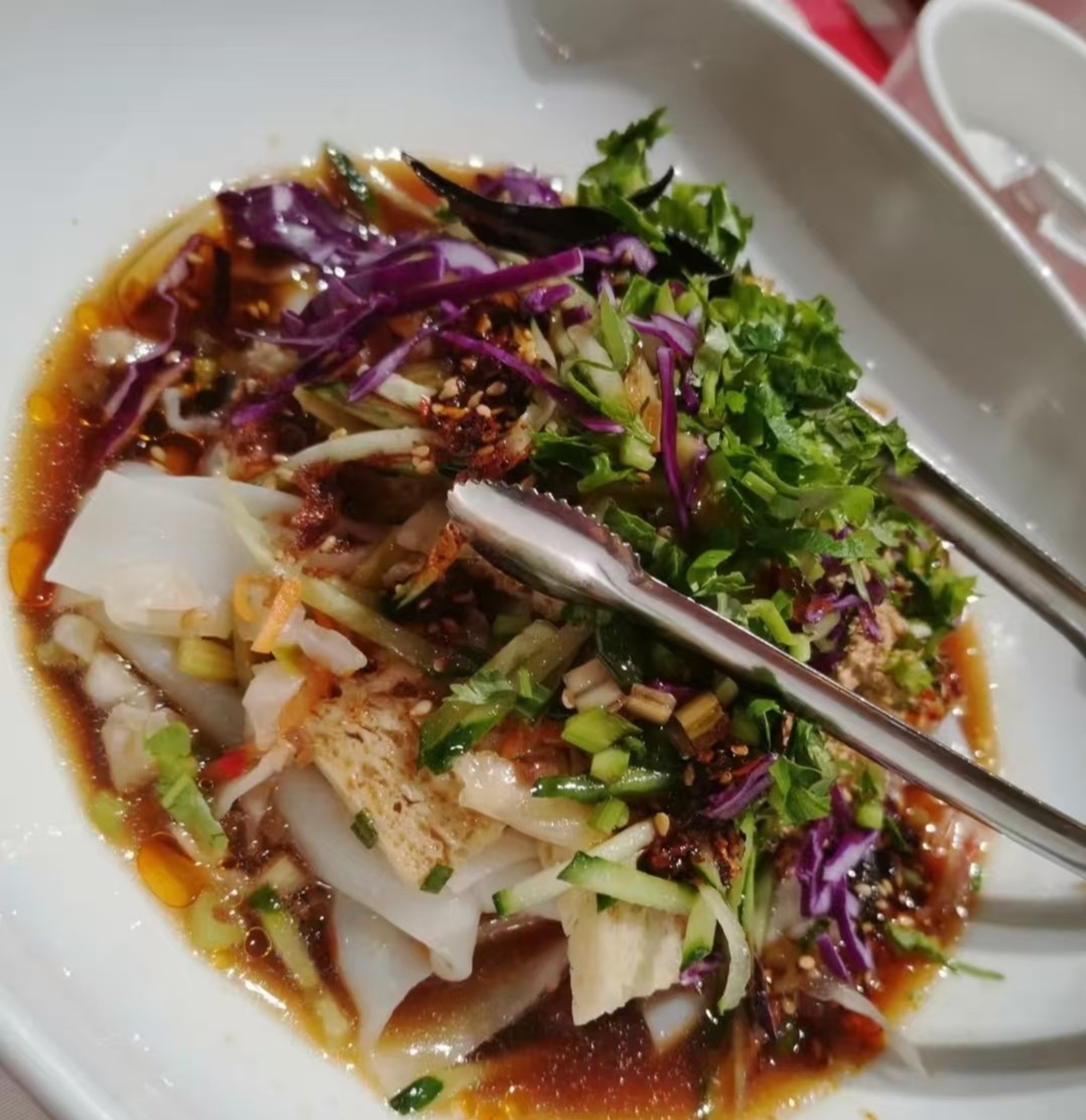 比如那道招牌的莜面,酱汁的味道单薄而工业化,虽然服务员说是现做的,但是很明显调味料里放了不少科技进去。