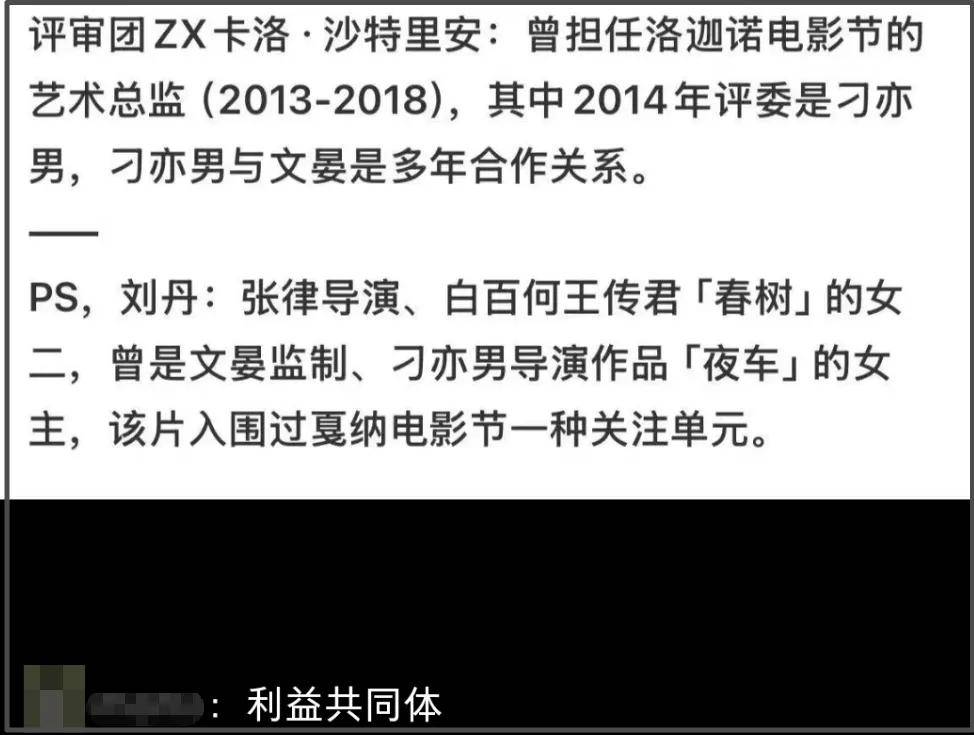 这里放上网友爆料原文,按照他的说法,与王传君一同出演《春树》的白百何早早就被文晏淘汰出局,随后文晏竭力反对范冰冰拿奖,甚至放话二人无法同台,本来范冰冰有机会和其他女星一起拿影后的,就因为文晏的强烈反对,她就错失了二封影后的机会。