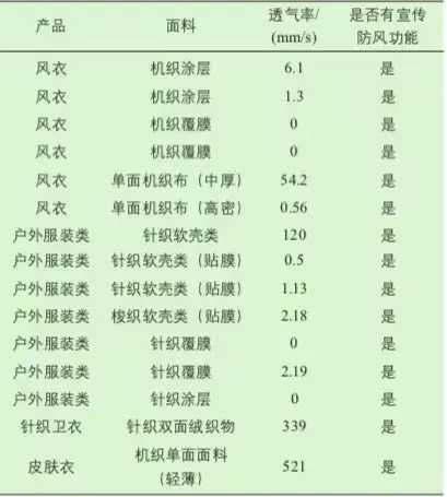 透气率越低,通常来说防风性能越高丨邱佳铭. 户外服装面料防风功能的评价及应用[J]. 中国纤检, 2020, 8: 78-81.
