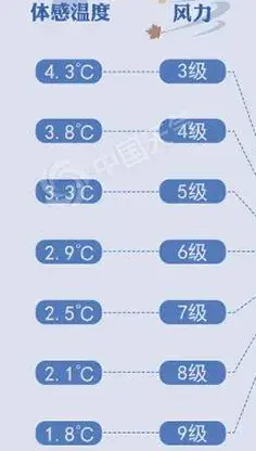 5摄氏度的气温下,不同风力中的体感温度丨中国天气