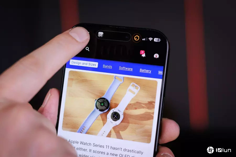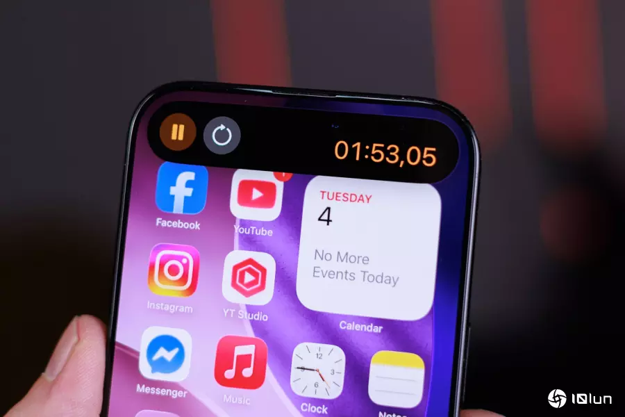 我们都能认同,在屏幕上唯一不想碰的地方放置交互元素实在太蠢了。是的,你可以很容易地把它擦掉,但这并不意味着我喜欢自拍摄像头镜头上总是沾满指纹。技术上说,动态岛的宽度略大于整个Face ID切口,所以你可以点在它的角落,或者非常精准地点在自拍摄像头和红外发射器之间。但说实话,有时——甚至相当常见——手指会正好落在自拍摄像头镜头上。太妙了……