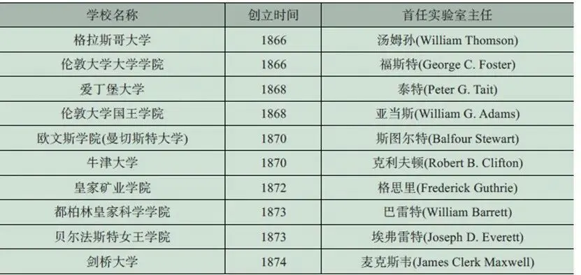 19世纪60年代,物理教学实验室在英国高校如雨后春笋般集中出现。1866 年成为实验室建制化的标志性年份。