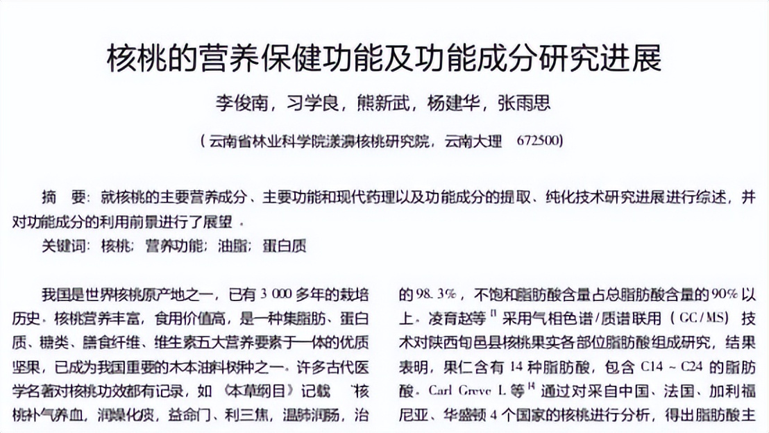 [1] 李俊南,习学良,熊新武,等.核桃的营养保健功能及功能成分研究进展[J].中国食物与营养,2018,24(05):60-64.