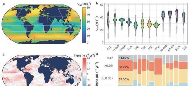 在本项研究中,论文共同通讯作者、南方科技大学教授曾振中和同事及合作者一起,分析了全球海洋1940年至2023年的每小时风速数据。他们发现,全球超过60%的沿海区域呈现极端风速显著上升的趋势,并常与全球变暖下的天气系统变化相关。