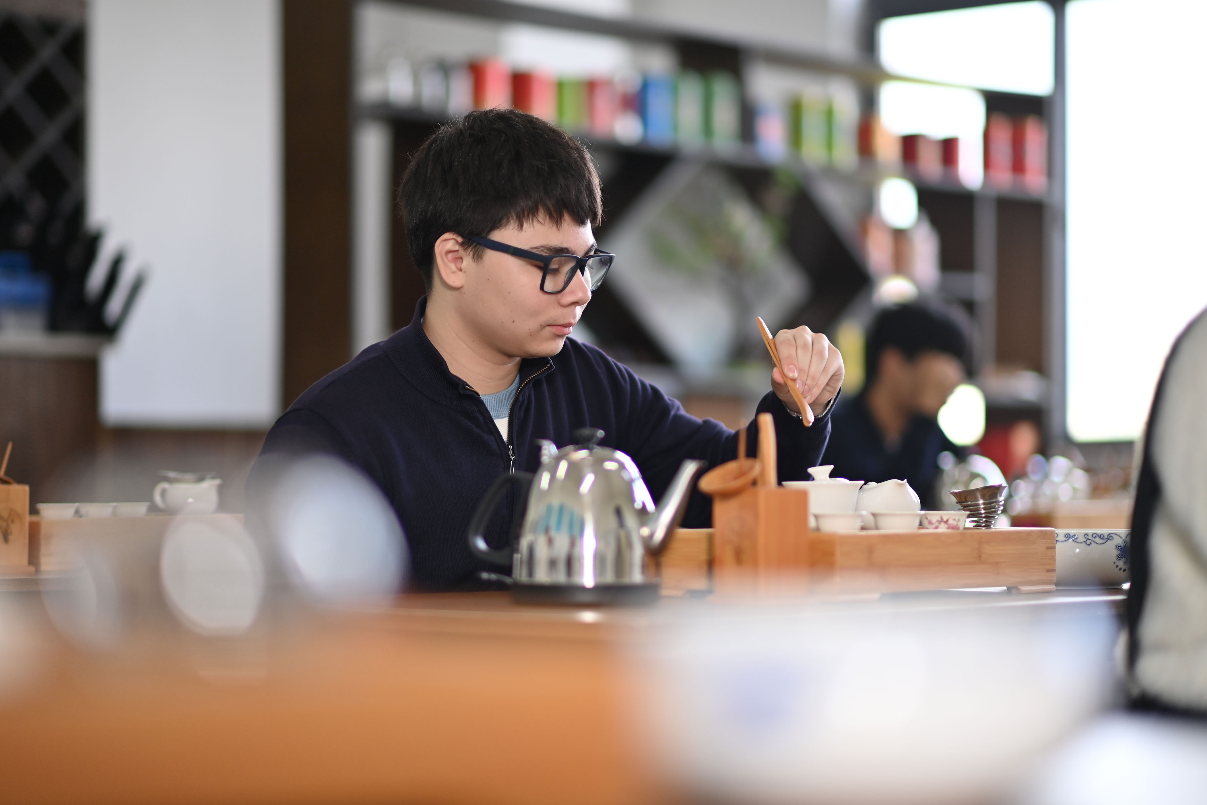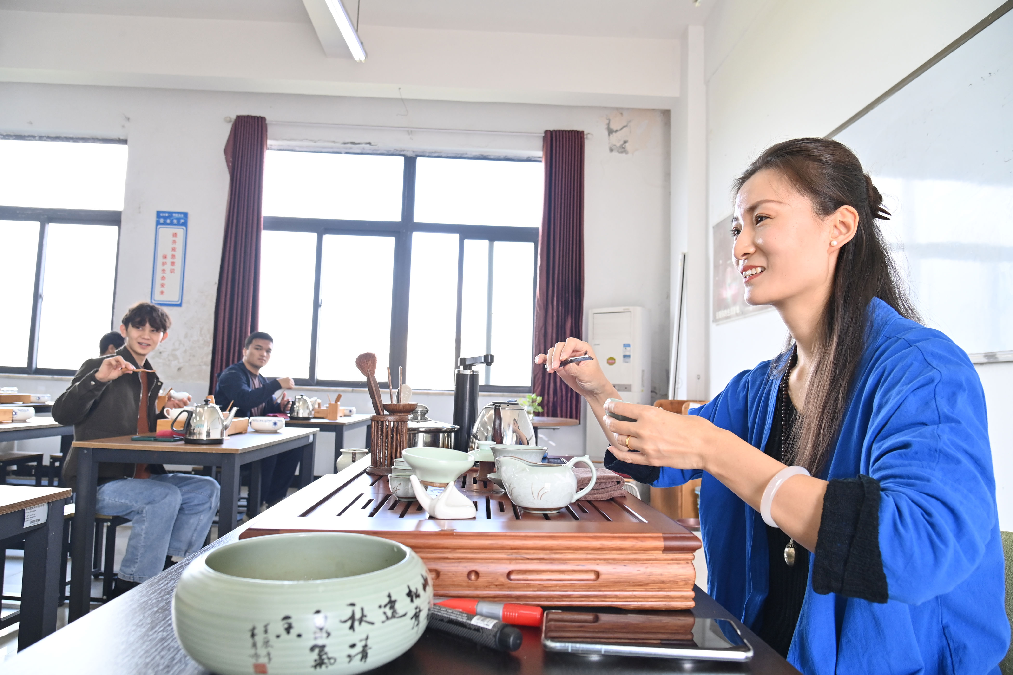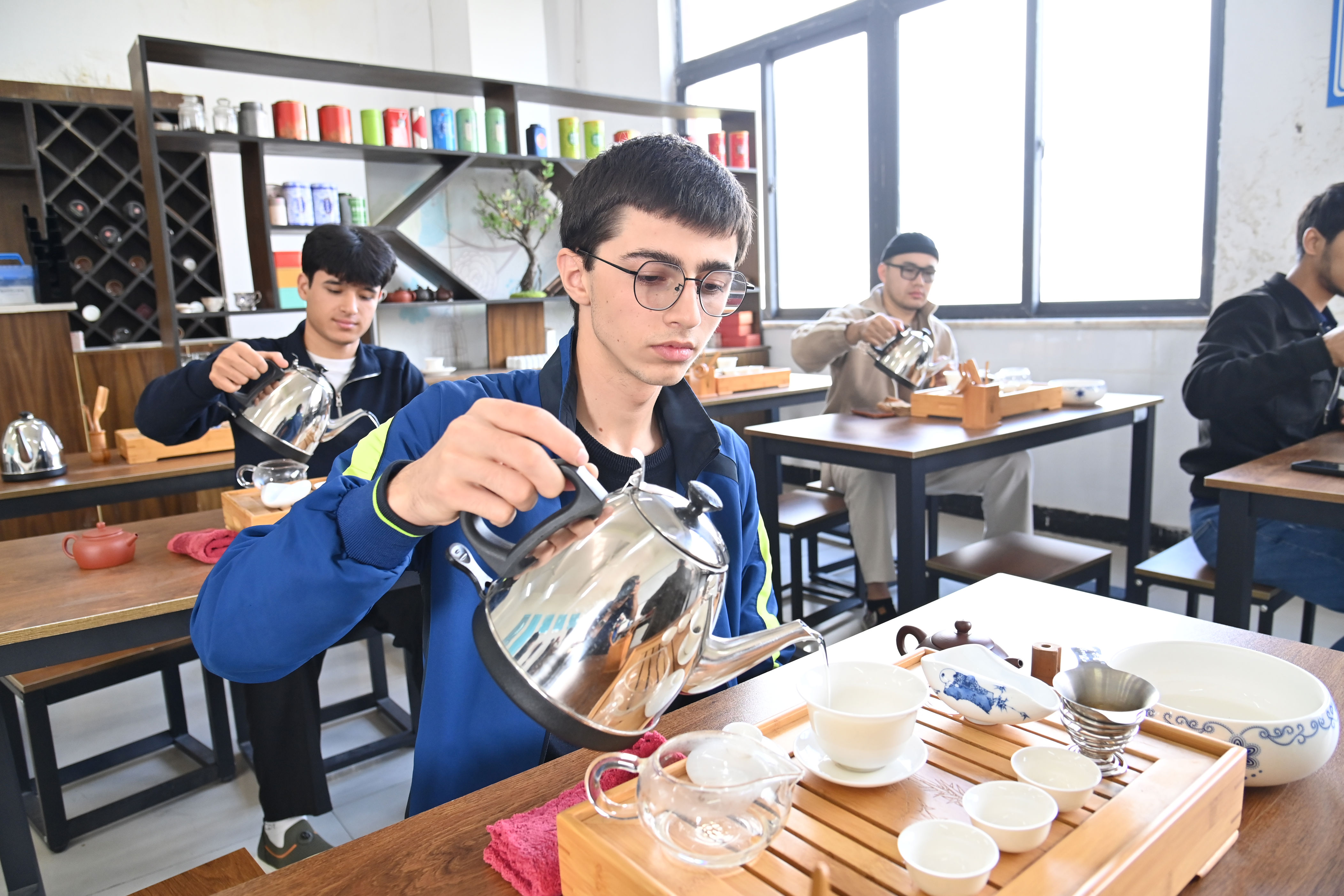 ▲2025年11月4日,在位于沙坪坝区的重庆建筑科技职业学院,外国留学生正在学习茶艺。特约摄影 孙凯芳