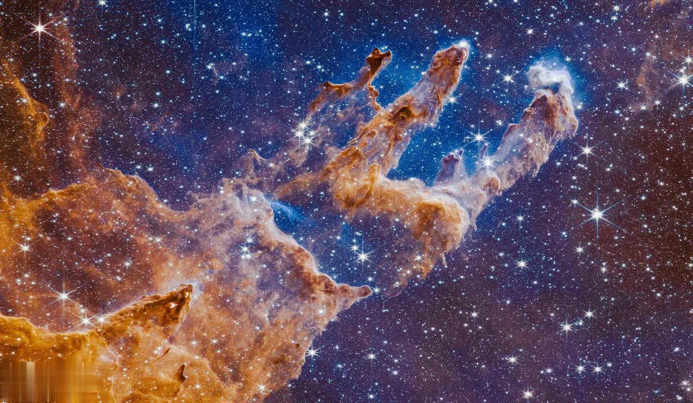 这是为什么呢?这其实和光速的传播有关系,根据科学家的研究我们能够知道,光速大约是每秒30万公里,这个速度是恒定不变的,这就意味着从遥远天体发出的光需要经过一定时间才能够达到我们的眼睛或者观测设备,比如说一个距离我们10亿光年的星系,它发出的光需要10亿年才能抵达地球,所以当我们观测到这个星系的时候,看到的其实是它10亿年前的样子,在这10亿年的时间内,它可能已经发生了巨大的变化,只是我们不知道而已,这种时间上的延迟使得我们观测到的宇宙其实是一个过去的宇宙,而且距离越远的天体,我们看到的时间就会越久远,前段时间,韦伯望远镜拍摄到了创生之柱,创生之柱是人类迄今为止观测到的最雄伟壮观的景象之一,它是恒星的诞生之地,其形状奇特似鹰爪,似怪兽,几乎满足了我们对太空的一切想象,让我们不禁好奇创生之柱究竟是什么?