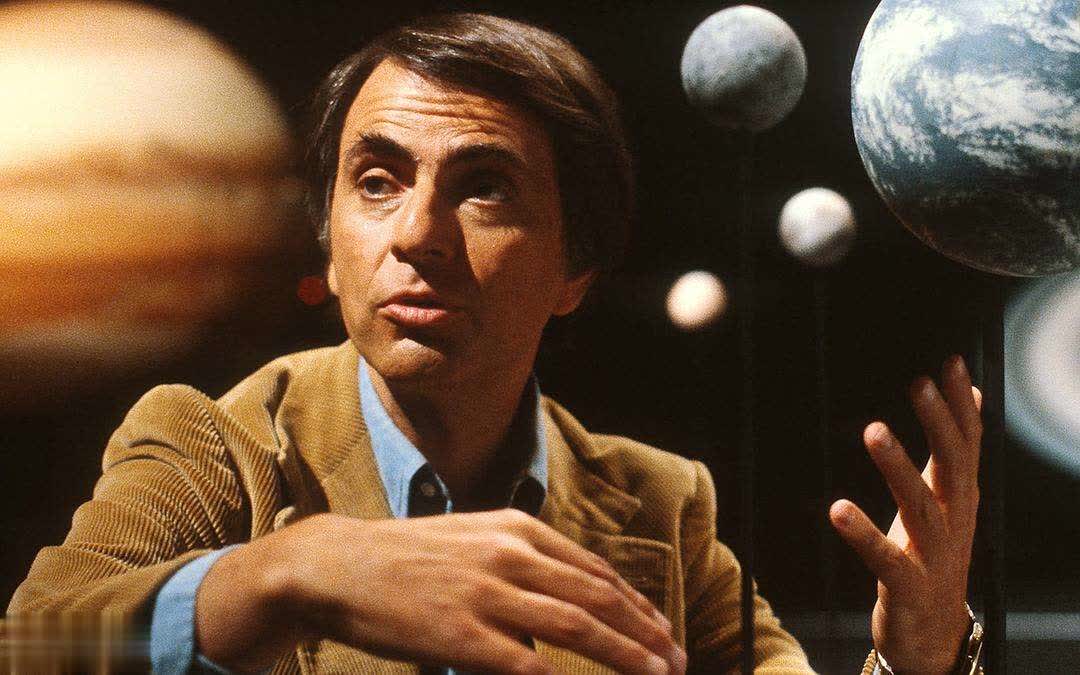 就相当于用一个圆珠笔在白纸上面轻轻地点了一下,如果不仔细看都无法发现,这张照片也成为了旅行者1号最具代表性的杰作,在全世界范围内广为流传,照片中0.12像素的微弱亮点正是我们地球——我们的地球只是一个光点,一个孤独的像素,更巧妙的是,阳光穿过旅行者1号相机的光学系统,在照片上留下了多道条纹,其中一道正好和地球发生相交,这使得地球成为了一粒悬浮在阳光中的微尘,著名的天文学家卡尔·萨根对《暗淡蓝点》的描述: