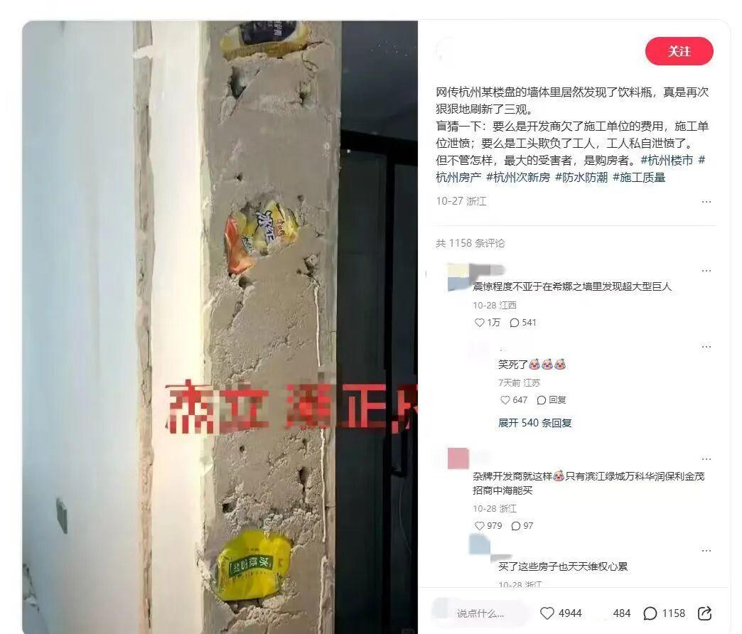 杭州一楼盘现“饮料瓶砌墙”?调查结果公布