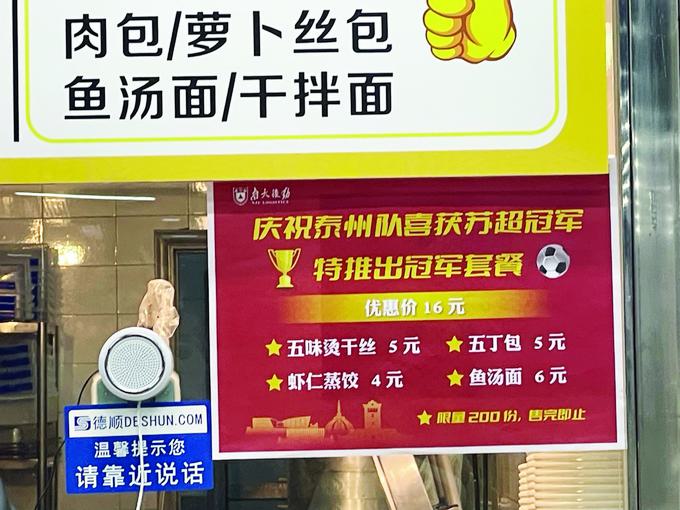 南大食堂泰州早茶飘香 推出16元“苏超冠军套餐”