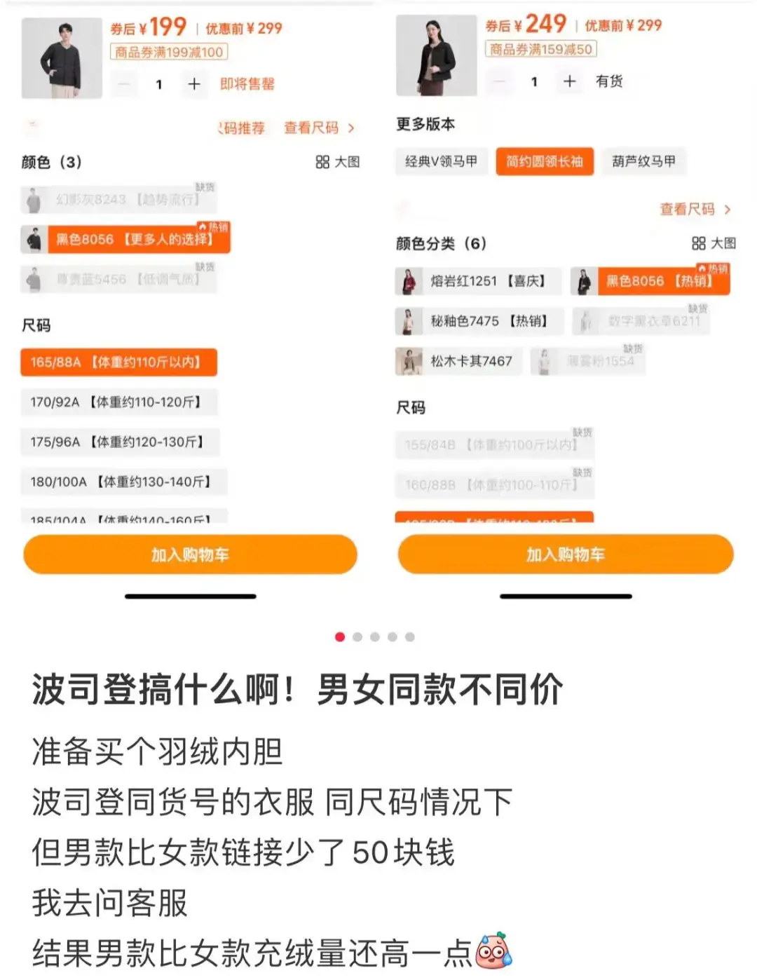 从百来块的保暖衣,到上千元的羽绒服,女装都可能成为“被区别对待”的那一方。
