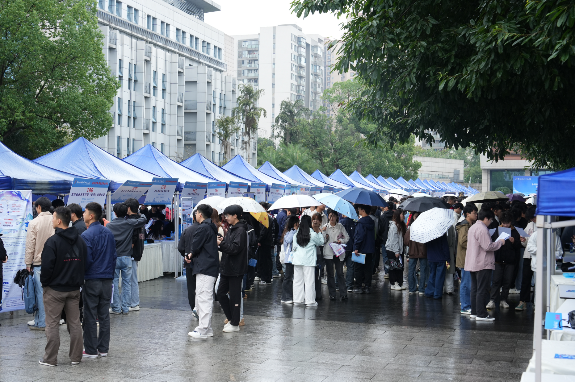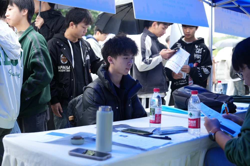 虽然下着细雨,但丝毫不影响学生们求职的热情。现场呈现出供需两旺、互动深入的热烈氛围。毕业生手持精心打磨的简历,主动上前与心仪企业沟通;用人单位通过现场宣讲与展板展示,清晰说明岗位职责,诚意邀约。