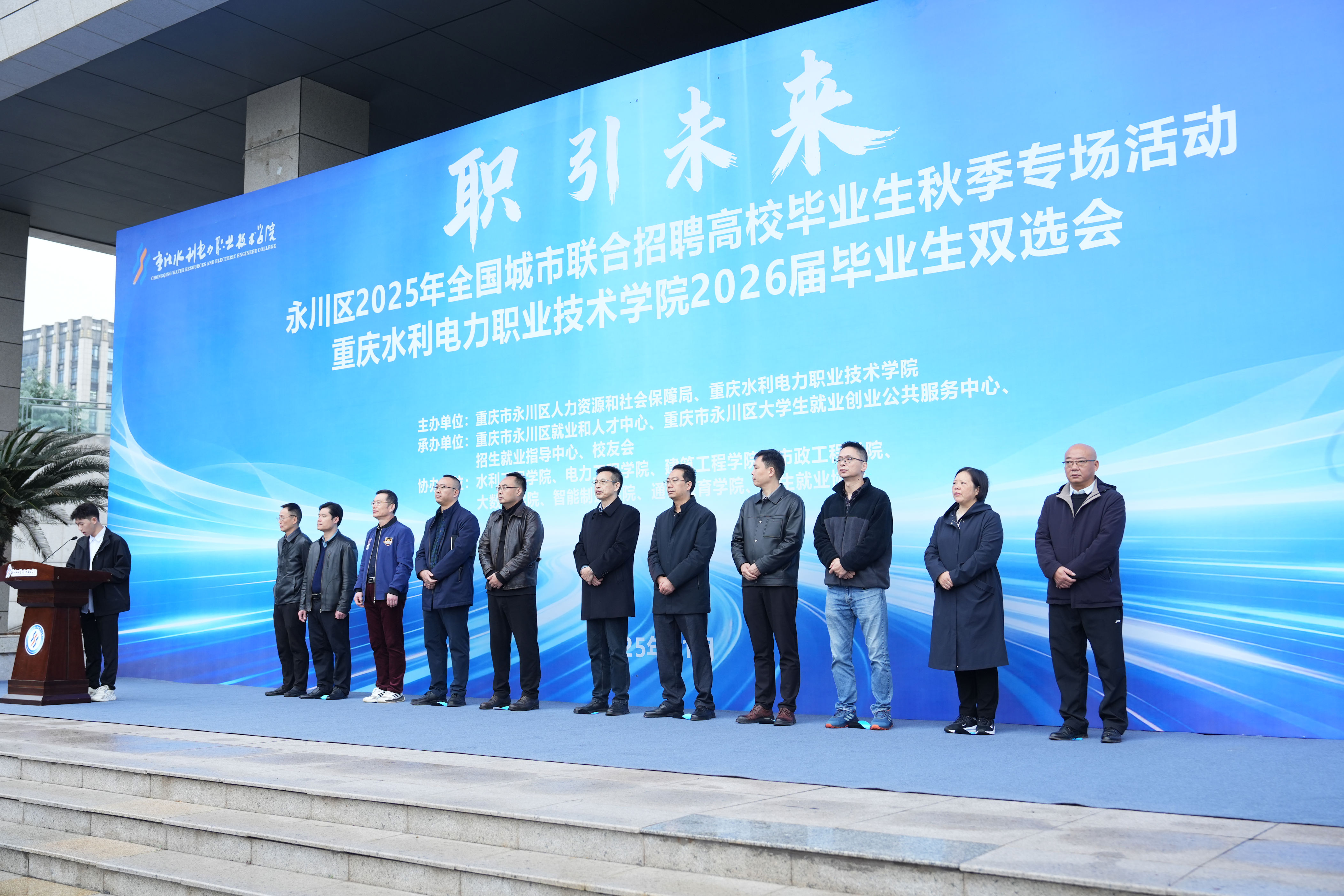 此次活动由重庆水利电力职业技术学院与永川区人社局、区就业和人才中心共同举办,旨在进一步加强高校与企业的良性互动,促进毕业生高质量就业。永川区就业和人才中心、重庆水利电力职业技术学院有关领导,重庆水利电力职业技术学院各二级学院负责人,全体参会企业及2026届毕业生代表等700余人参加了开幕式。
