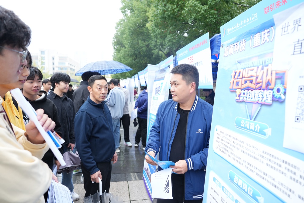 11月7日,重庆水利电力职业技术学院图书馆前广场人头攒动、气氛热烈。在这里,“职引未来”永川区2025年全国城市联合招聘高校毕业生秋季专场活动暨重庆水利电力职业技术学院2026届毕业生双选会火热举行,200余家企事业单位入校揽才,提供就业岗位10000余个。